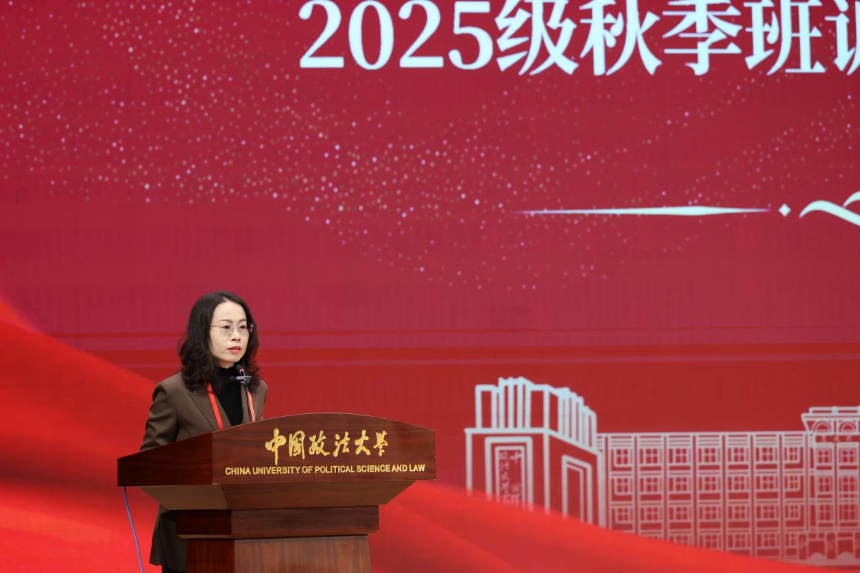2024级学员代表王征结合自身学习经历,分享了在法大的收获与感悟。她谈到,学校雄厚的法学实力与浓厚的学习氛围为学员成长提供了坚实支撑,尤其是授课教师将法理与实务案例结合的教学方式、学员班主任组织的学业规划班会等细节,都是学院心系学员、服务学员初心宗旨的真实展现。并建议新学员们树立法治情怀,拓展国际视野,坚持终身学习。